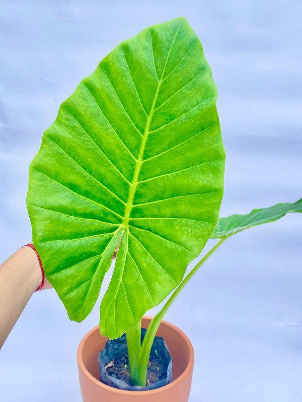 Este combo contiene: 1 Alocasia en maceta de 3 LT + 1 maceta plástica acanalada Milán N25